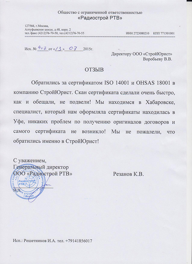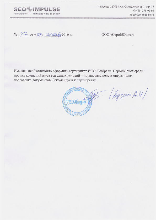 Отзывы клиентов "СтройЮрист" по ISO в Электростали