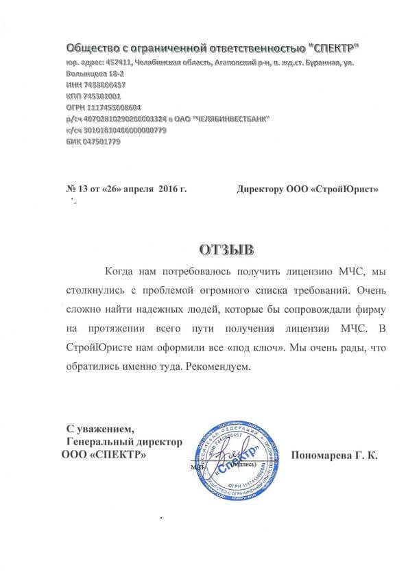 Отзывы клиентов "СтройЮрист" по лицензированию МЧС в Электростали
