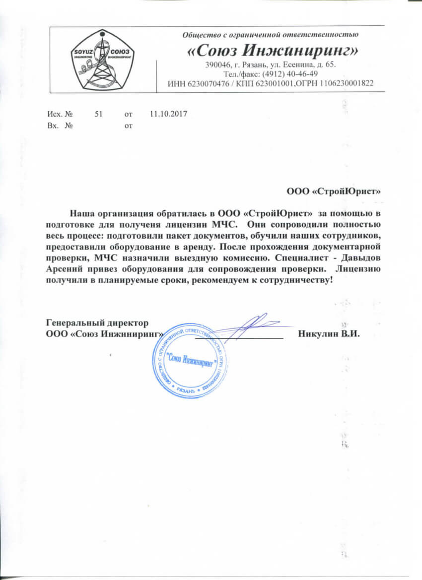 Отзывы клиентов "СтройЮрист" по лицензированию МЧС в Электростали