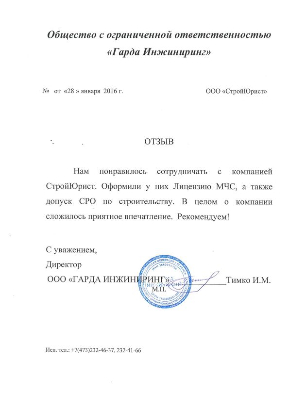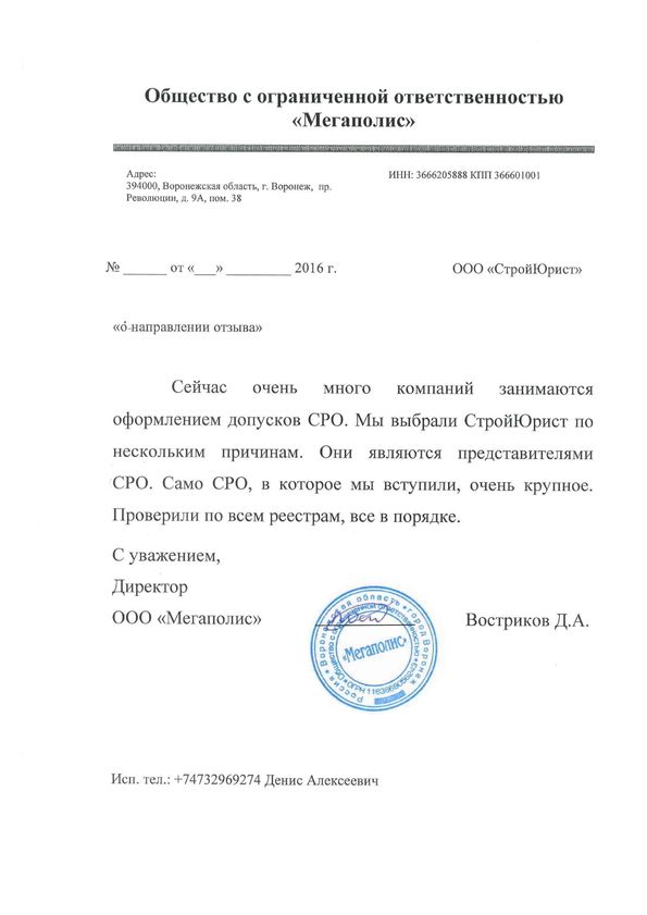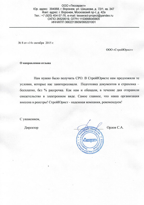 Отзывы клиентов "СтройЮрист" по вступлению в СРО в Электростали