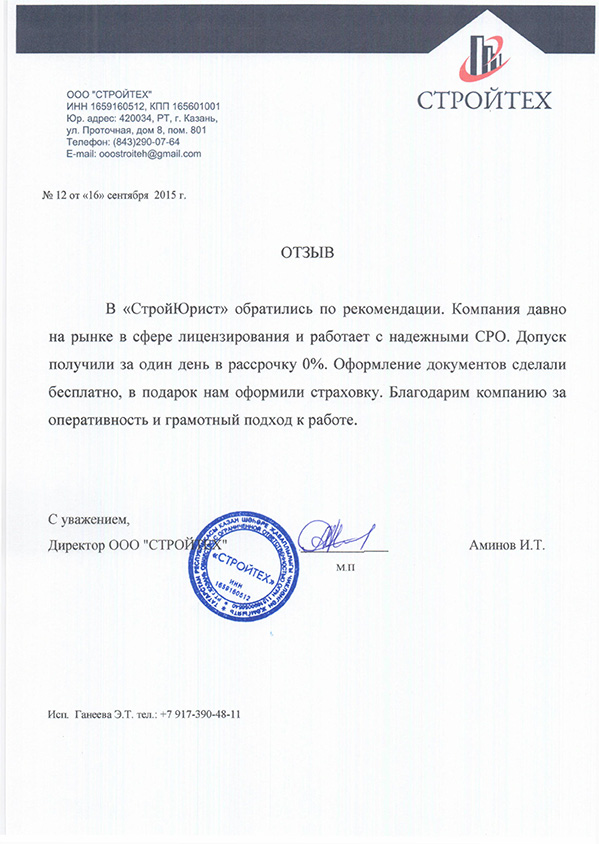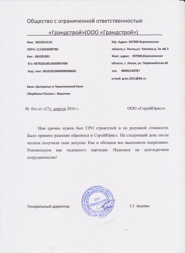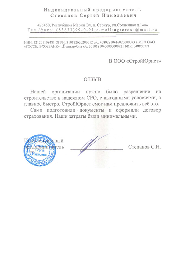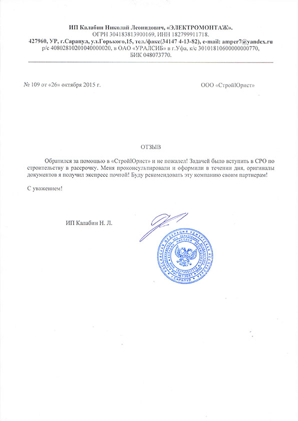 Отзывы клиентов "СтройЮрист" по вступлению в СРО в Электростали