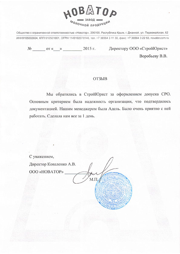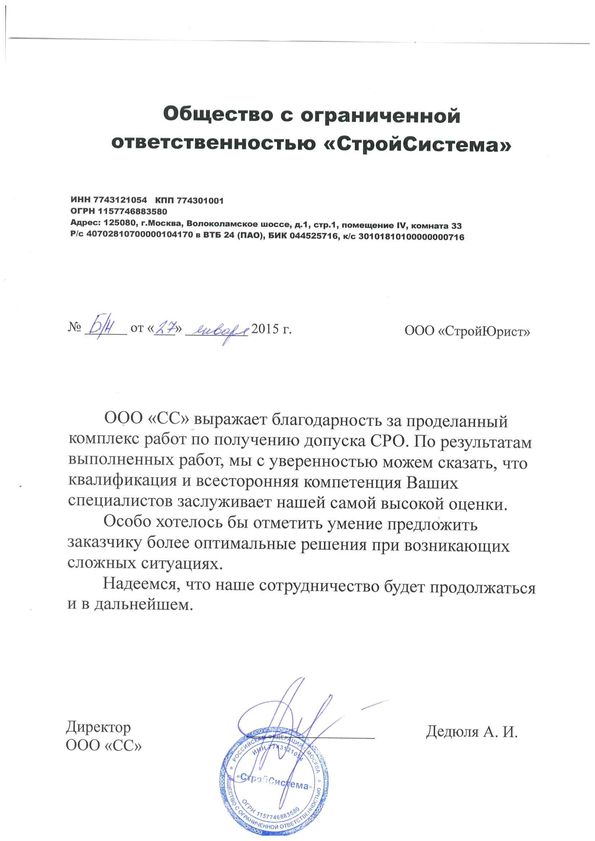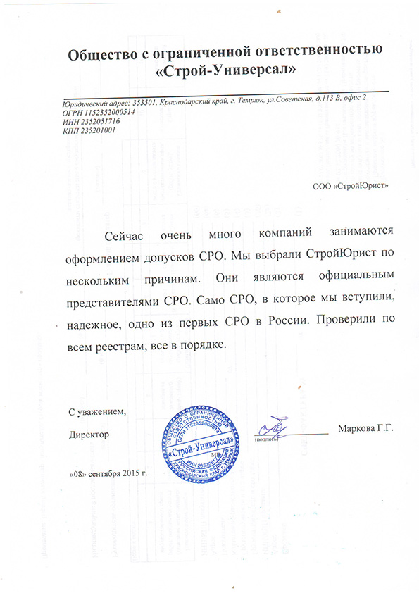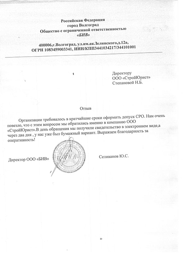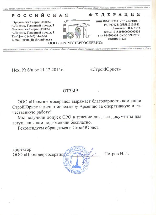 Отзывы клиентов "СтройЮрист" по вступлению в СРО в Электростали