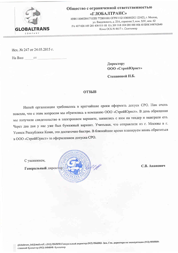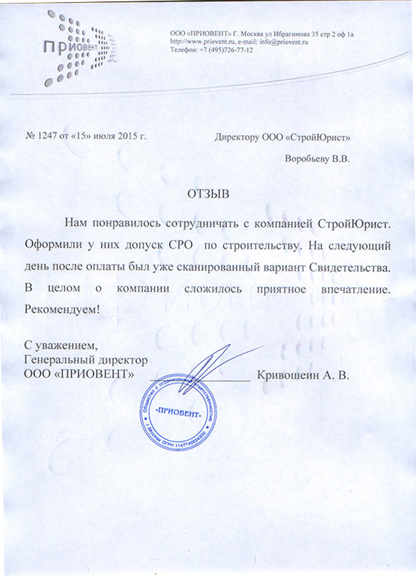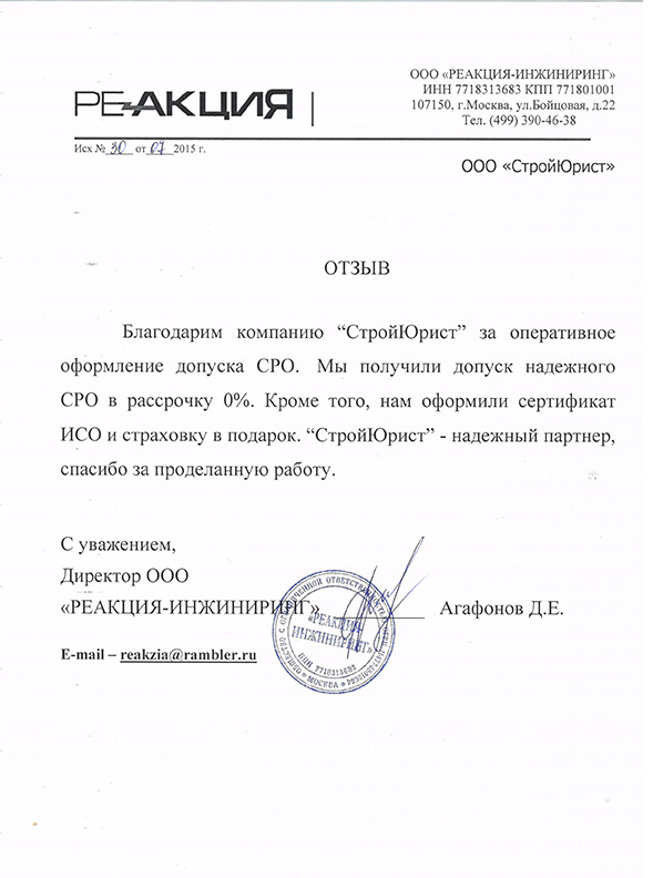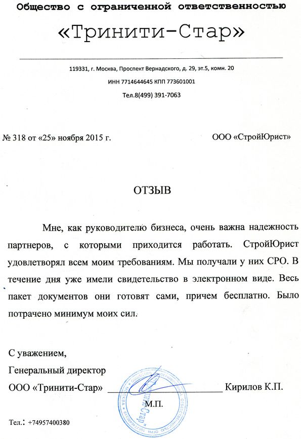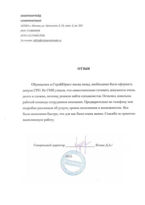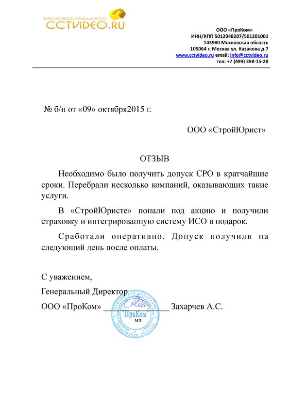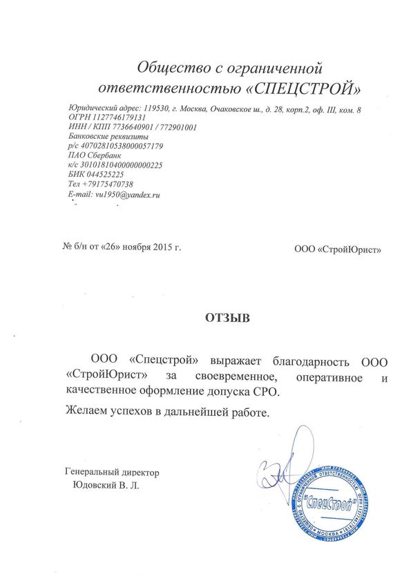 Отзывы клиентов "СтройЮрист" по вступлению в СРО в Электростали