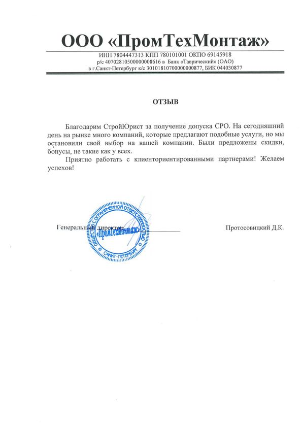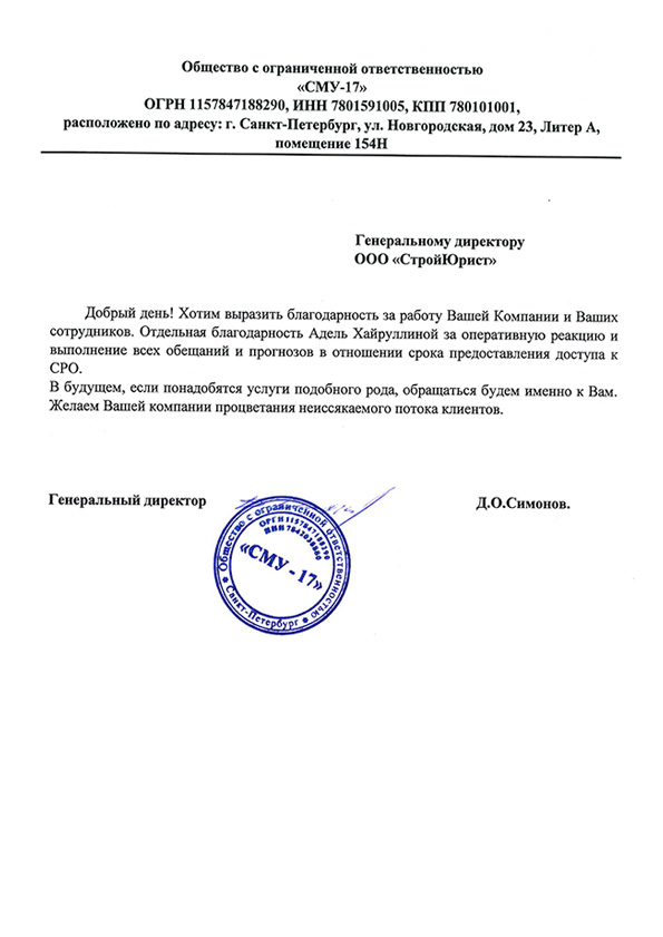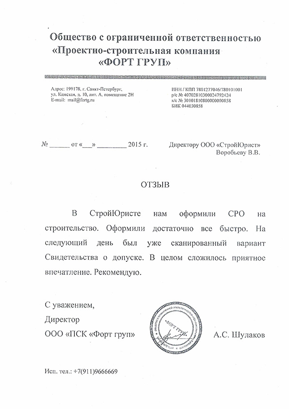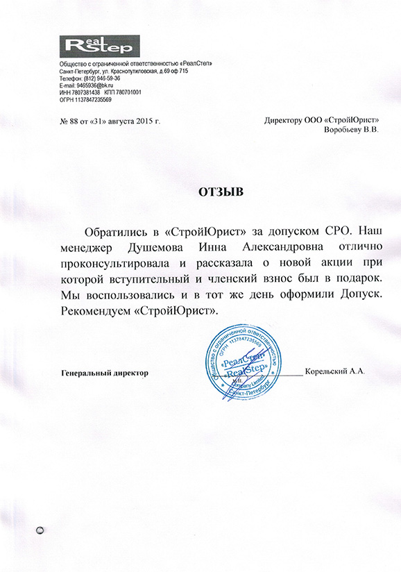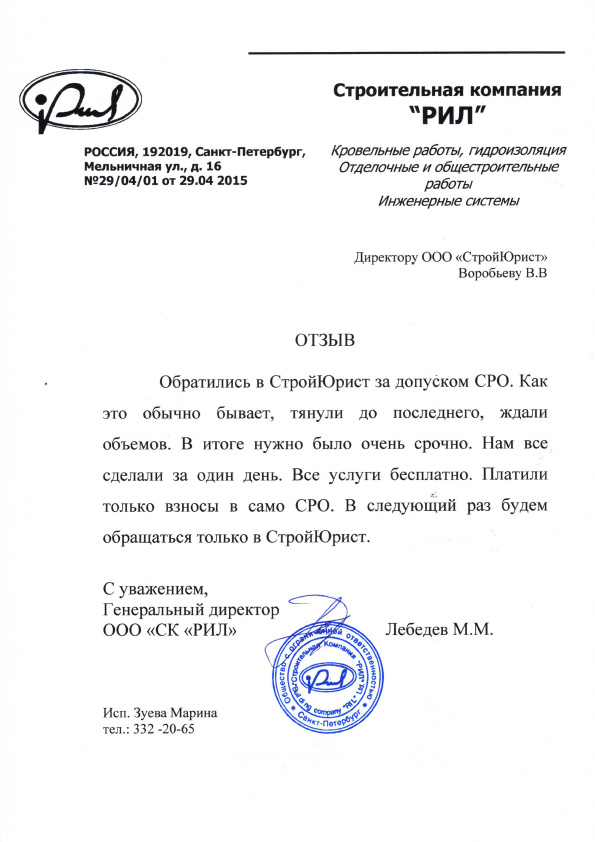Отзывы клиентов "СтройЮрист" по вступлению в СРО в Электростали