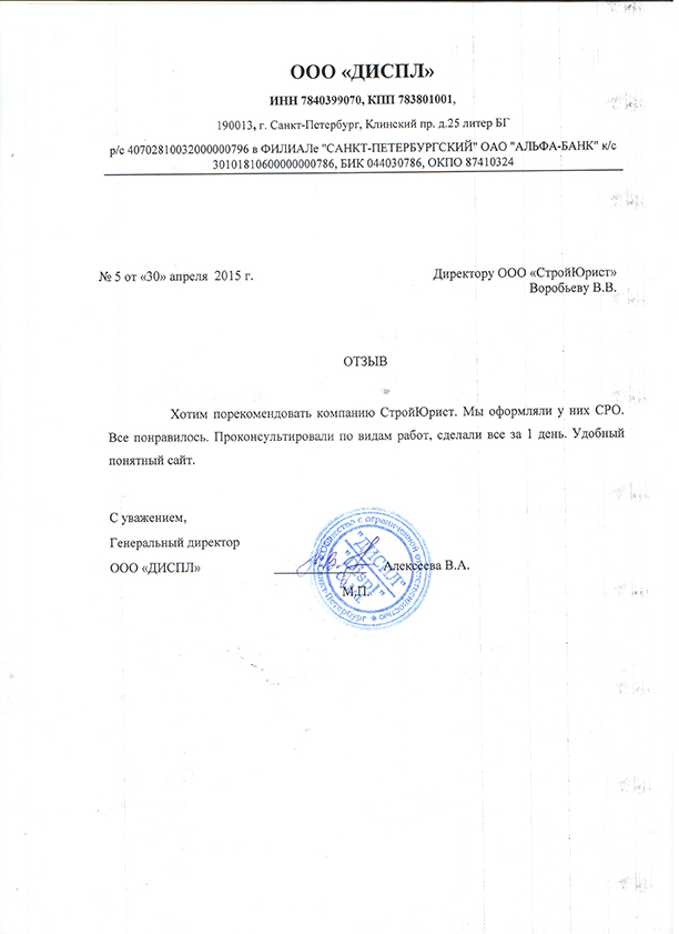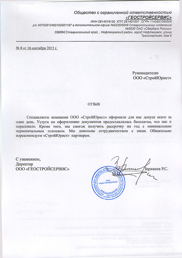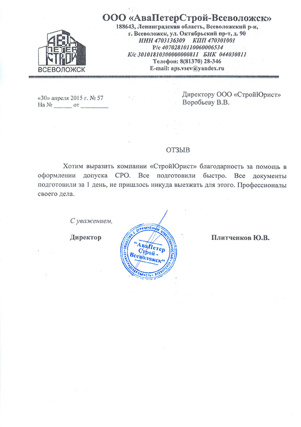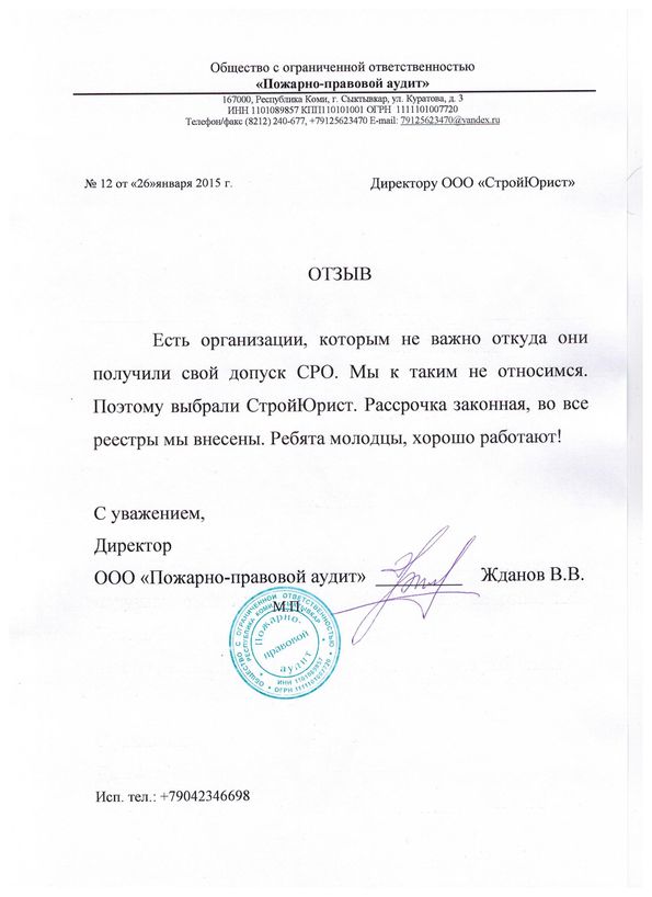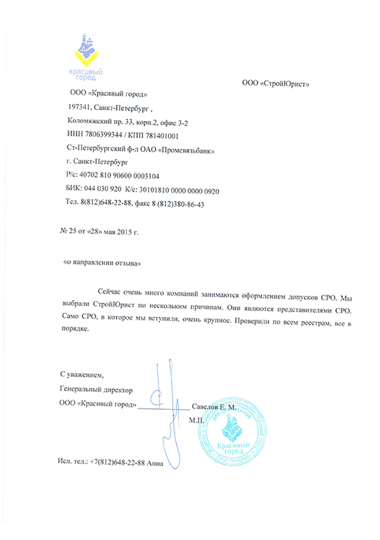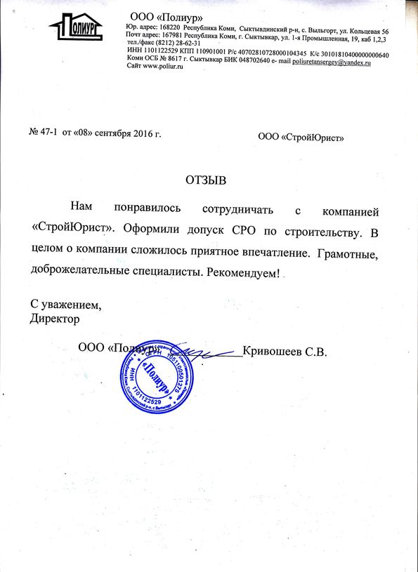 Отзывы клиентов "СтройЮрист" по вступлению в СРО в Электростали