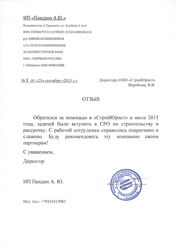 Отзывы клиентов "СтройЮрист" по вступлению в СРО в Электростали