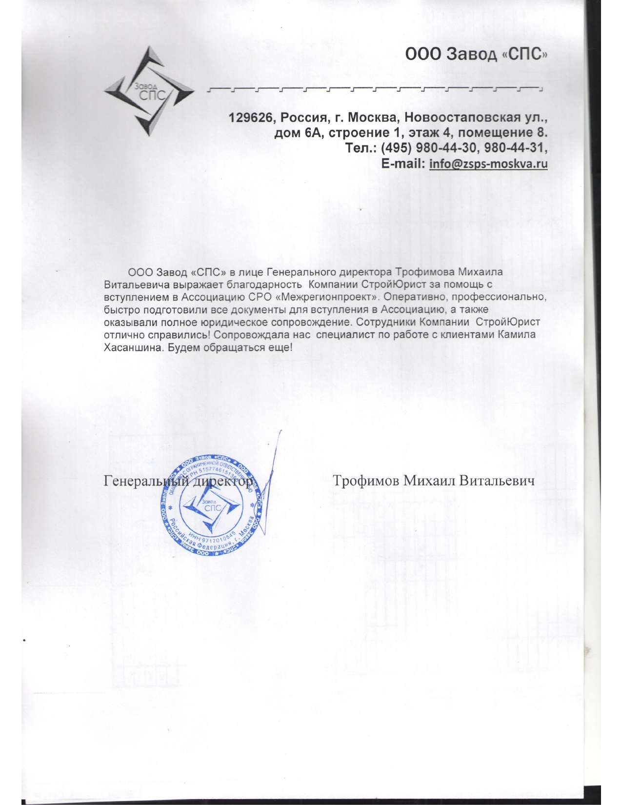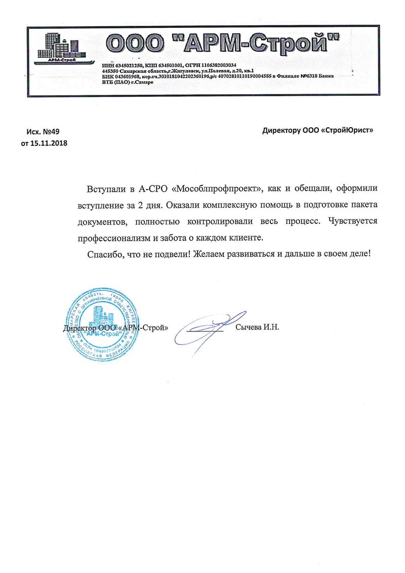 Отзывы клиентов "СтройЮрист" по вступлению в СРО в Электростали