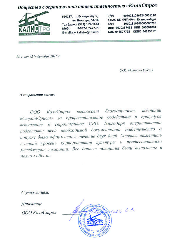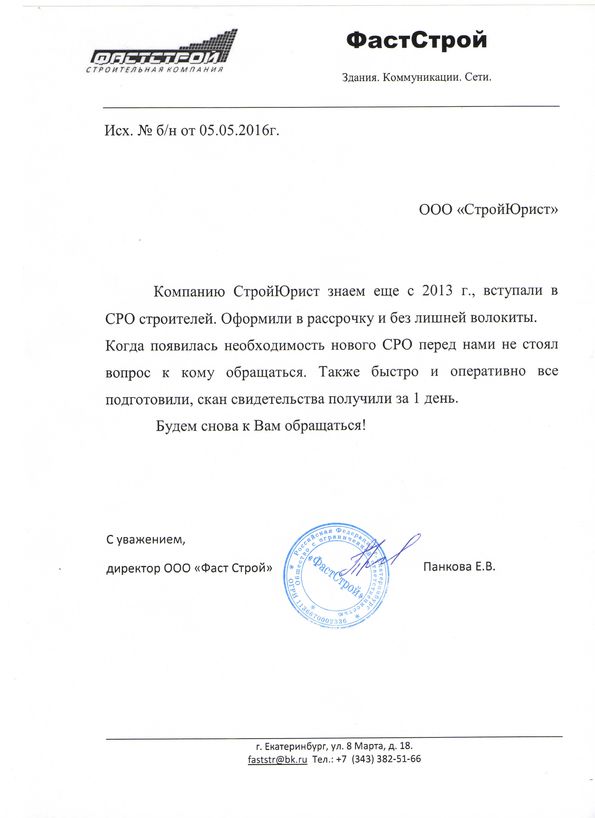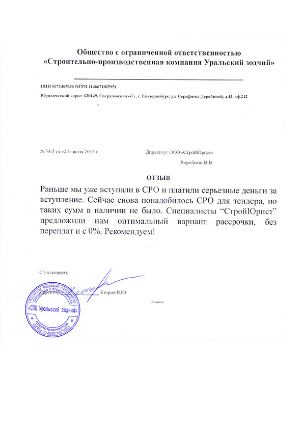 Отзывы клиентов "СтройЮрист" по вступлению в СРО в Электростали