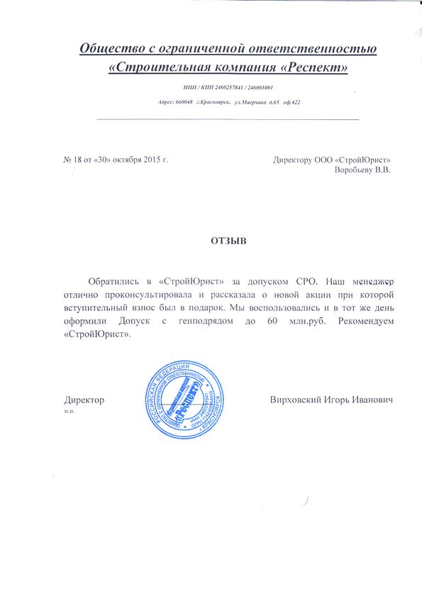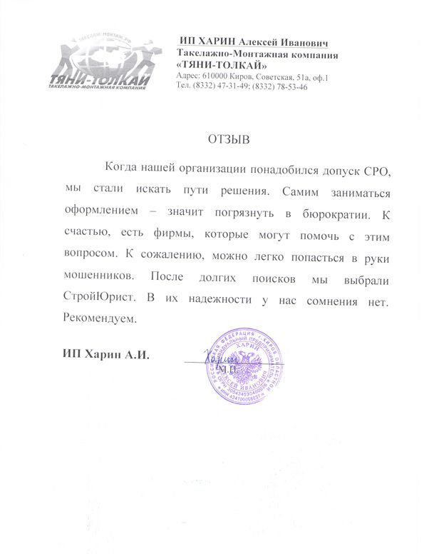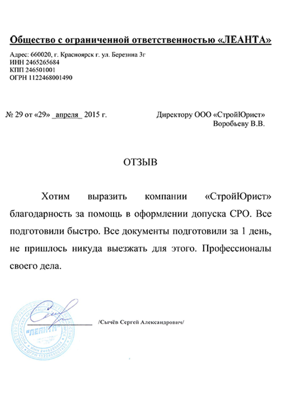 Отзывы клиентов "СтройЮрист" по вступлению в СРО в Электростали