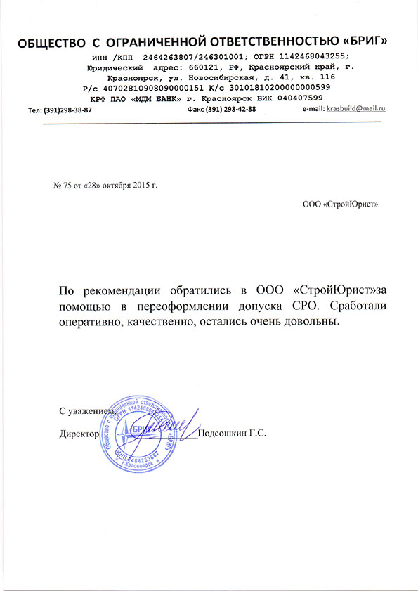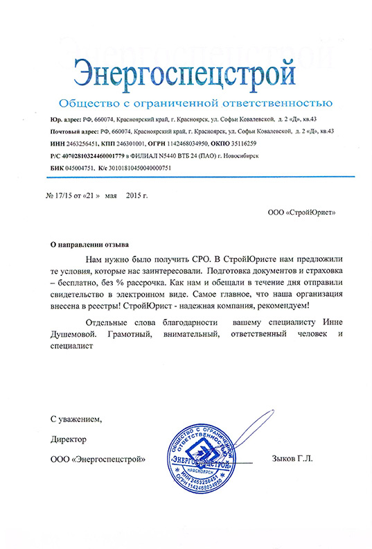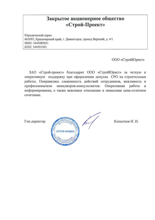 Отзывы клиентов "СтройЮрист" по вступлению в СРО в Электростали