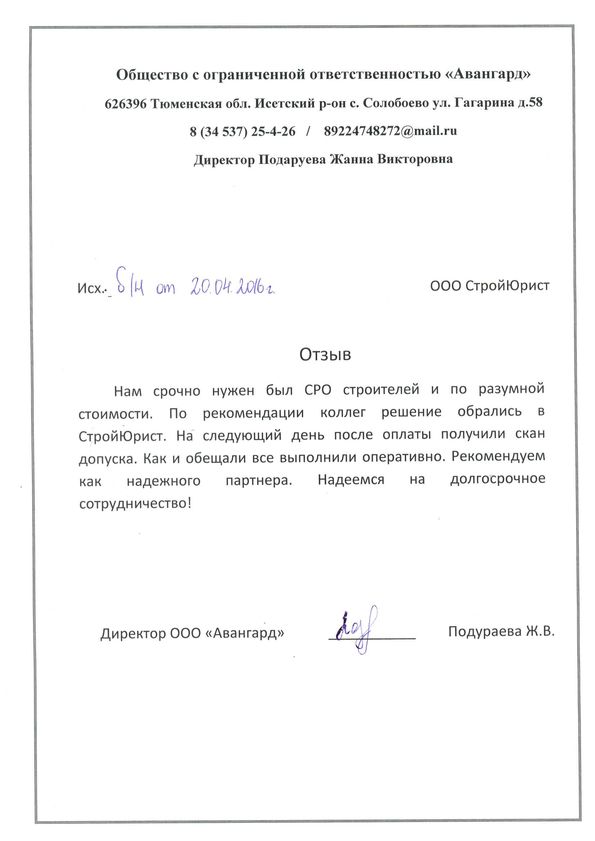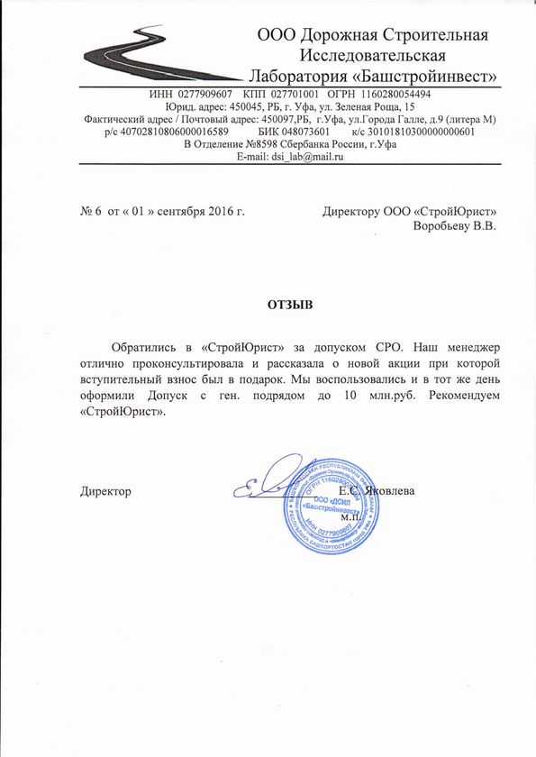 Отзывы клиентов "СтройЮрист" по вступлению в СРО в Электростали