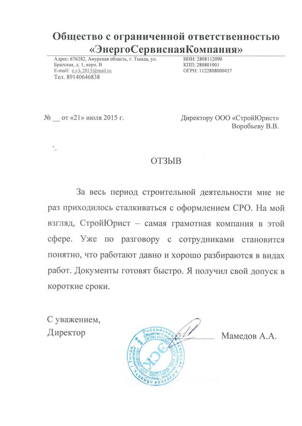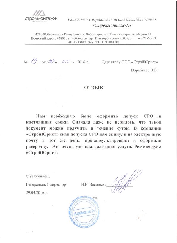 Отзывы клиентов "СтройЮрист" по вступлению в СРО в Электростали