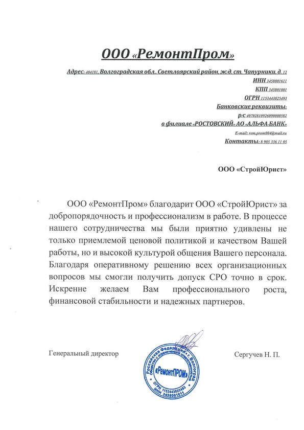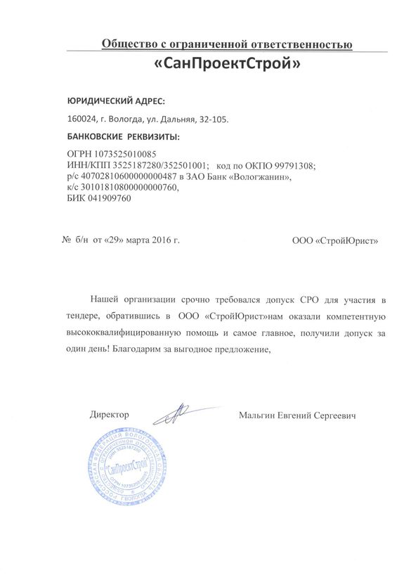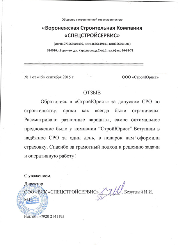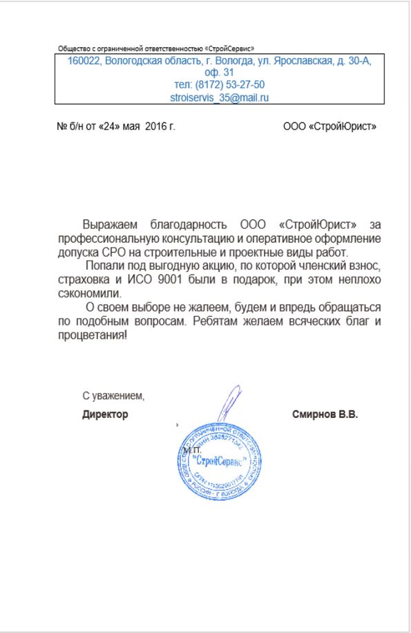 Отзывы клиентов "СтройЮрист" по вступлению в СРО в Электростали
